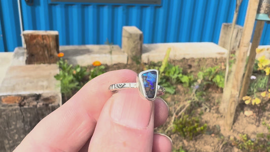 Australian Boulder Opal Boho Ring | Recycled Silver 925 | Size M
