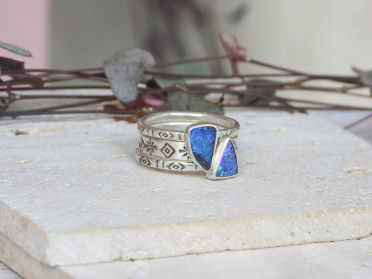 Multiway Boulder Opal Stacking Ring | Recycled Silver 925 | Size Q