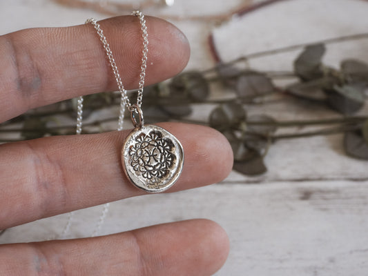 Rustic Tear Drop Mandala Necklace | Recycled Silver 925