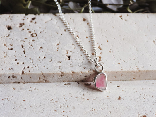 Super Dainty Pink Cornish Seaglass Charm Necklace | Gylly Beach, Falmouth