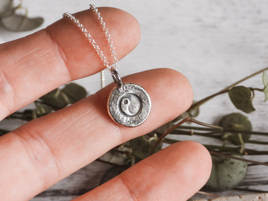 Rustic Yin-Yang Charm Necklace | Recycled Sterling Silver