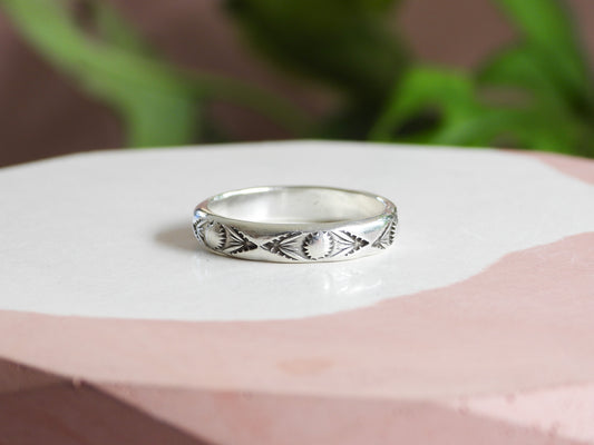Boho Style Stamped Stacking Ring | Recycled Silver 925