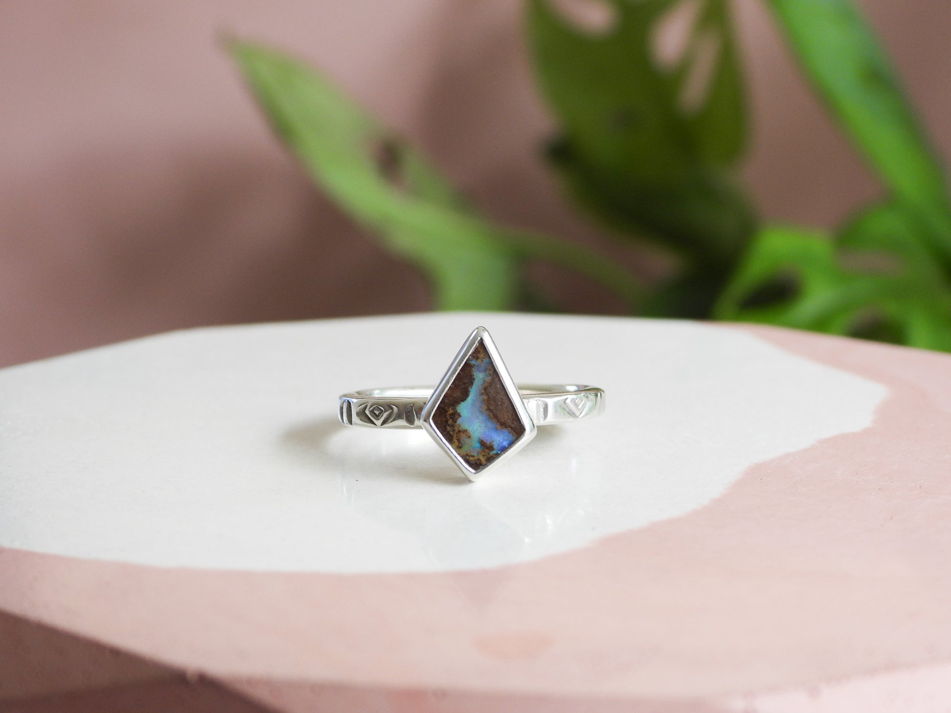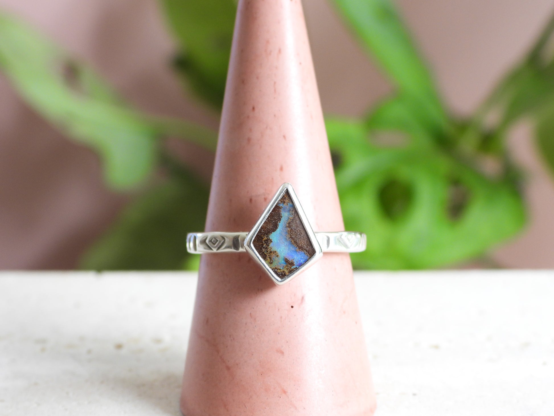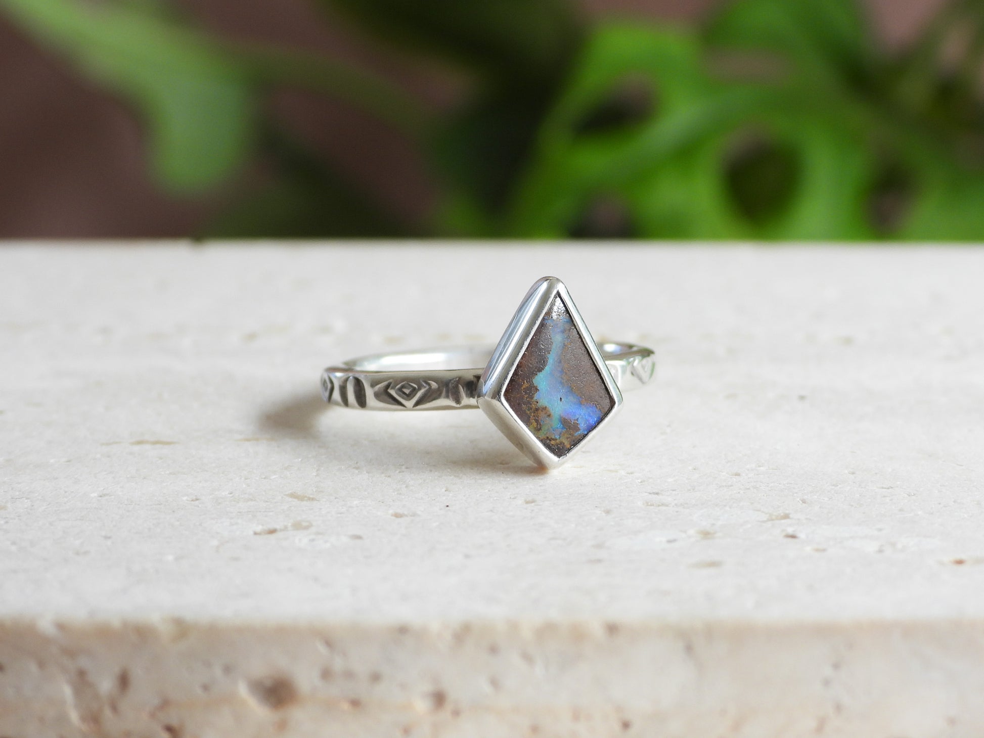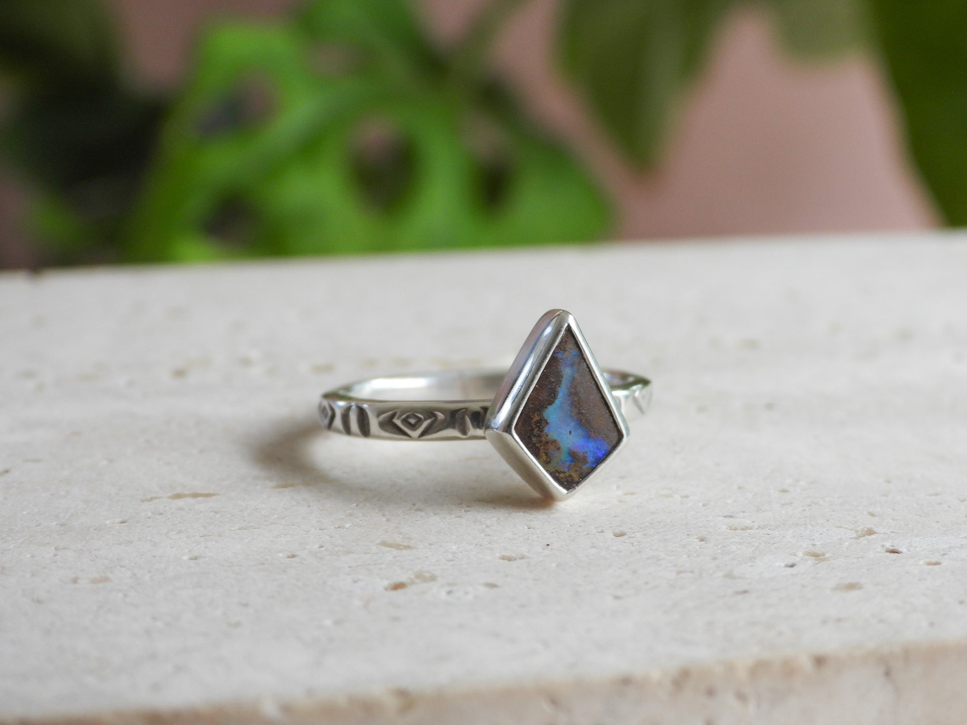 Boho Style Australian Boulder Opal Ring | Recycled Silver 925 | Size N