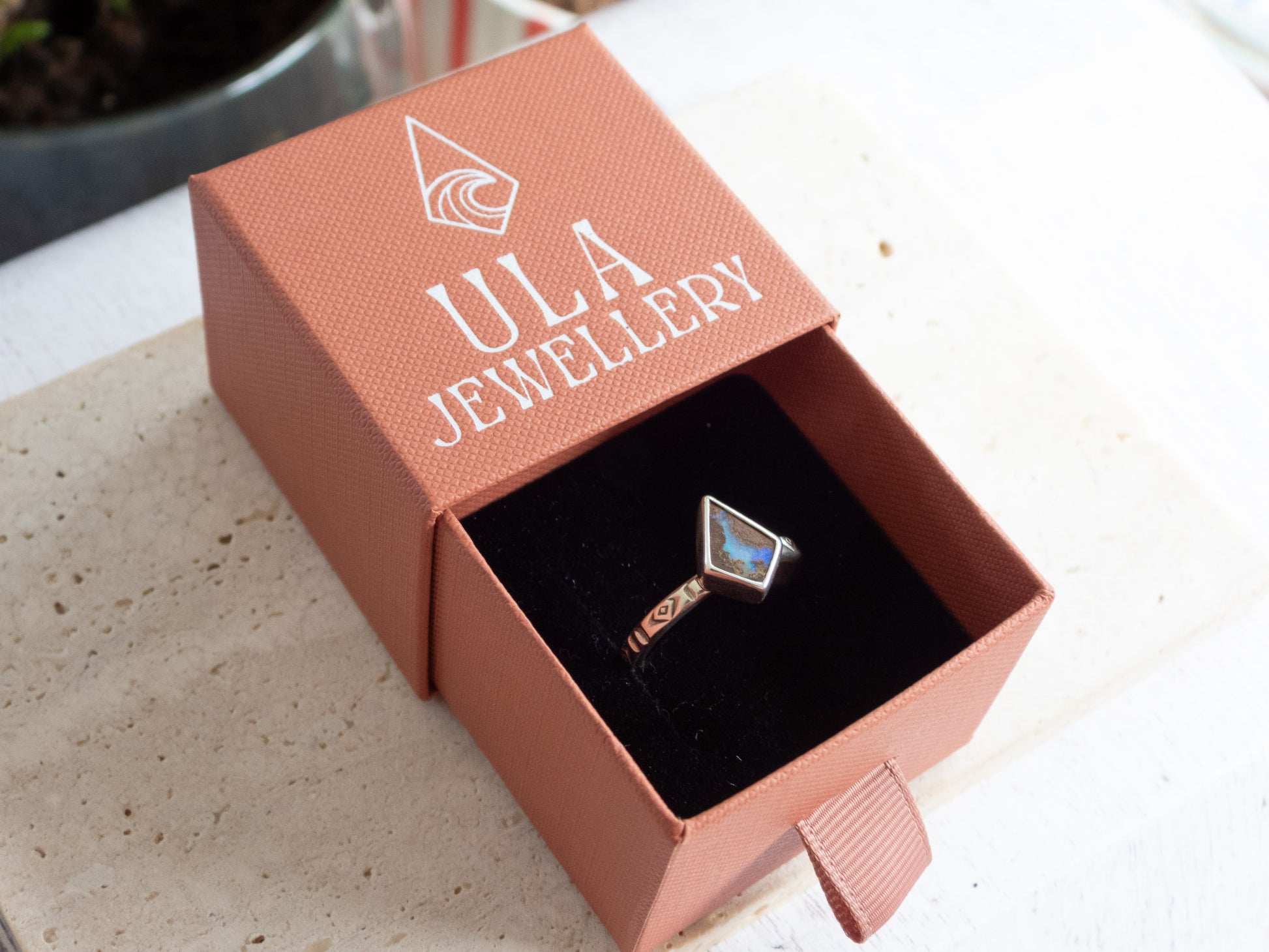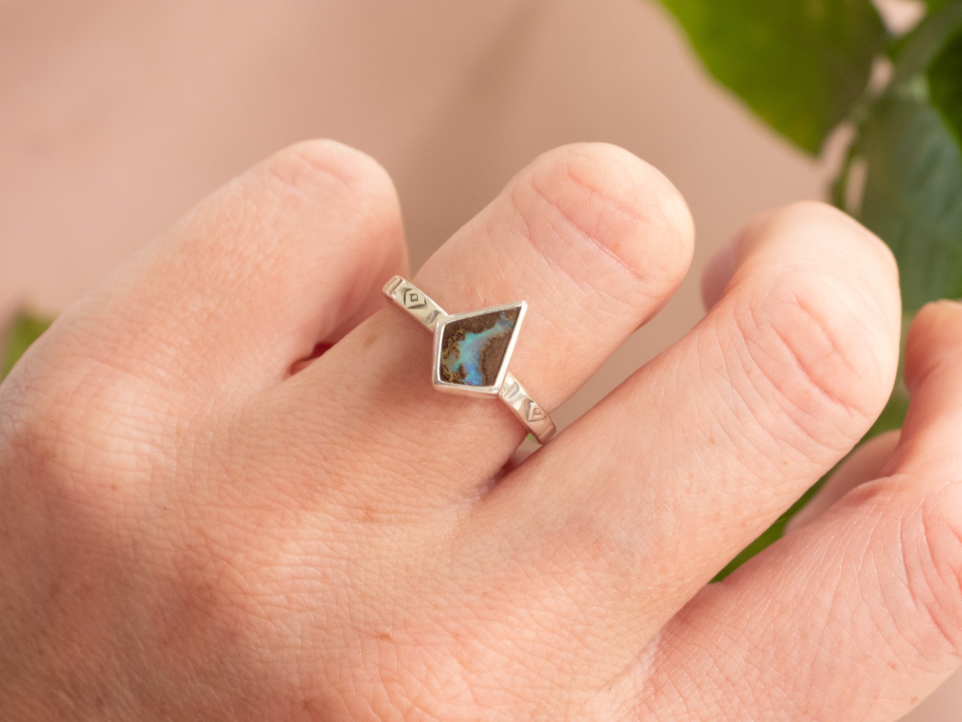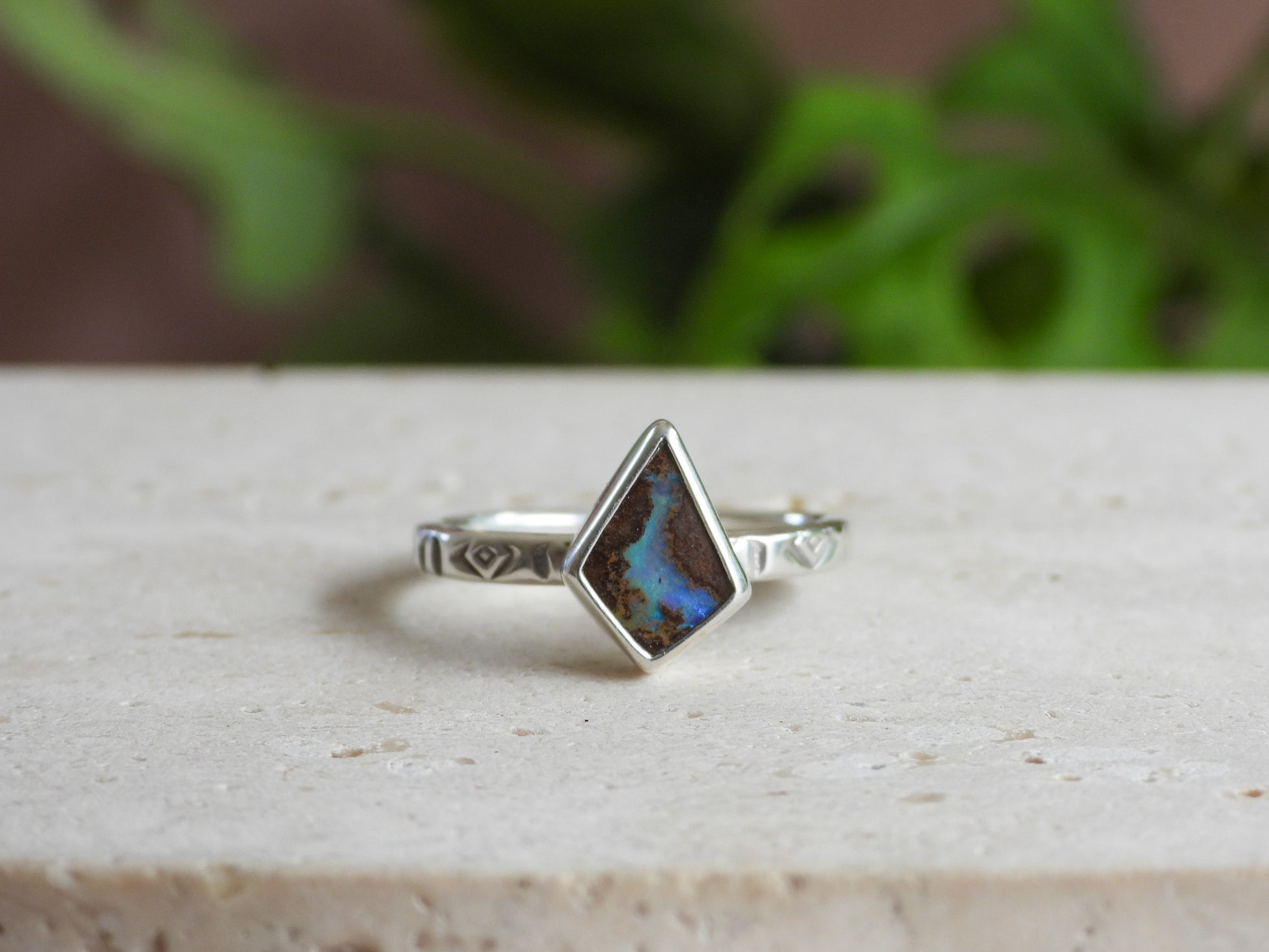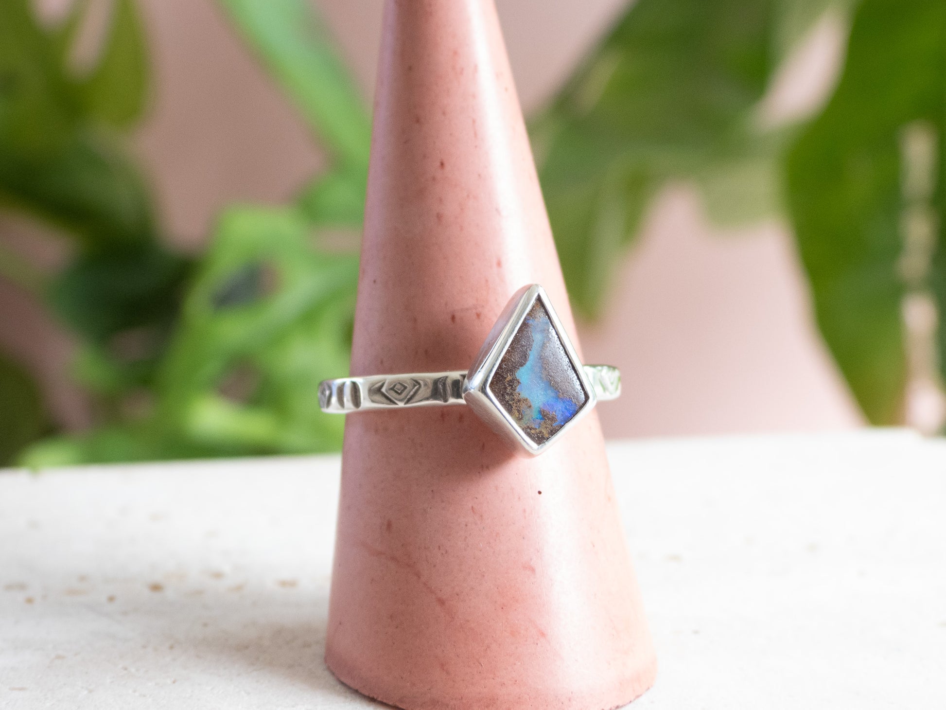 Boho Style Australian Boulder Opal Ring | Recycled Silver 925 | Size N