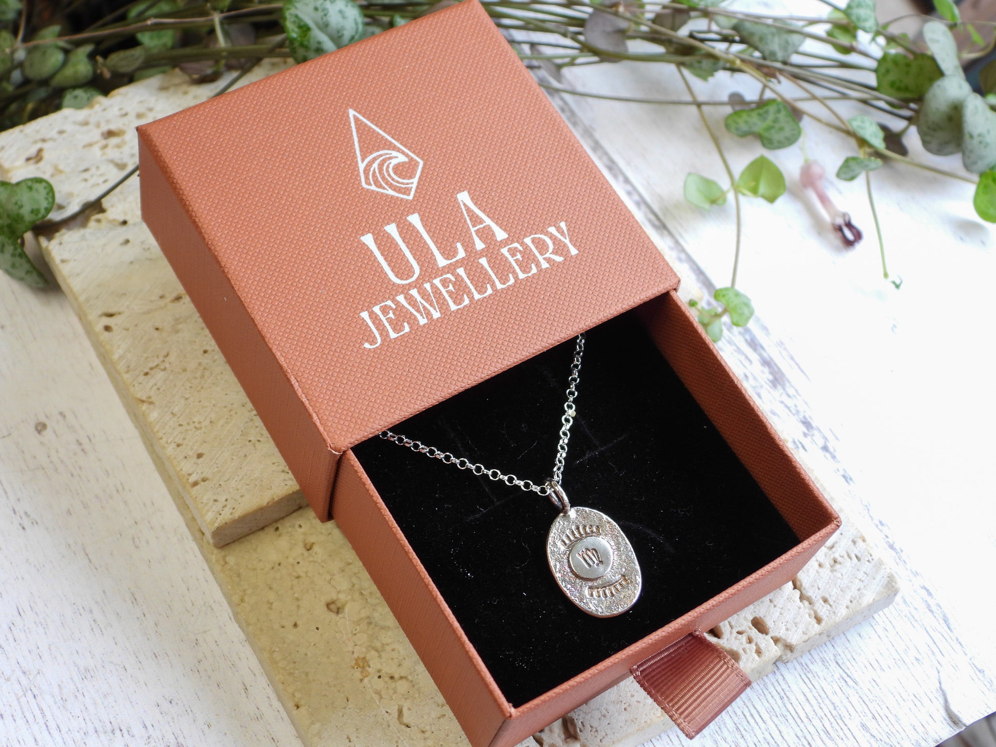 Embrace your star sign with this handcrafted bohemian-style necklace, made to order using eco-friendly, recycled sterling silver. Each piece is individually created with a rustic finish, giving it a one-of-a-kind shape and character – no two are exactly alike.