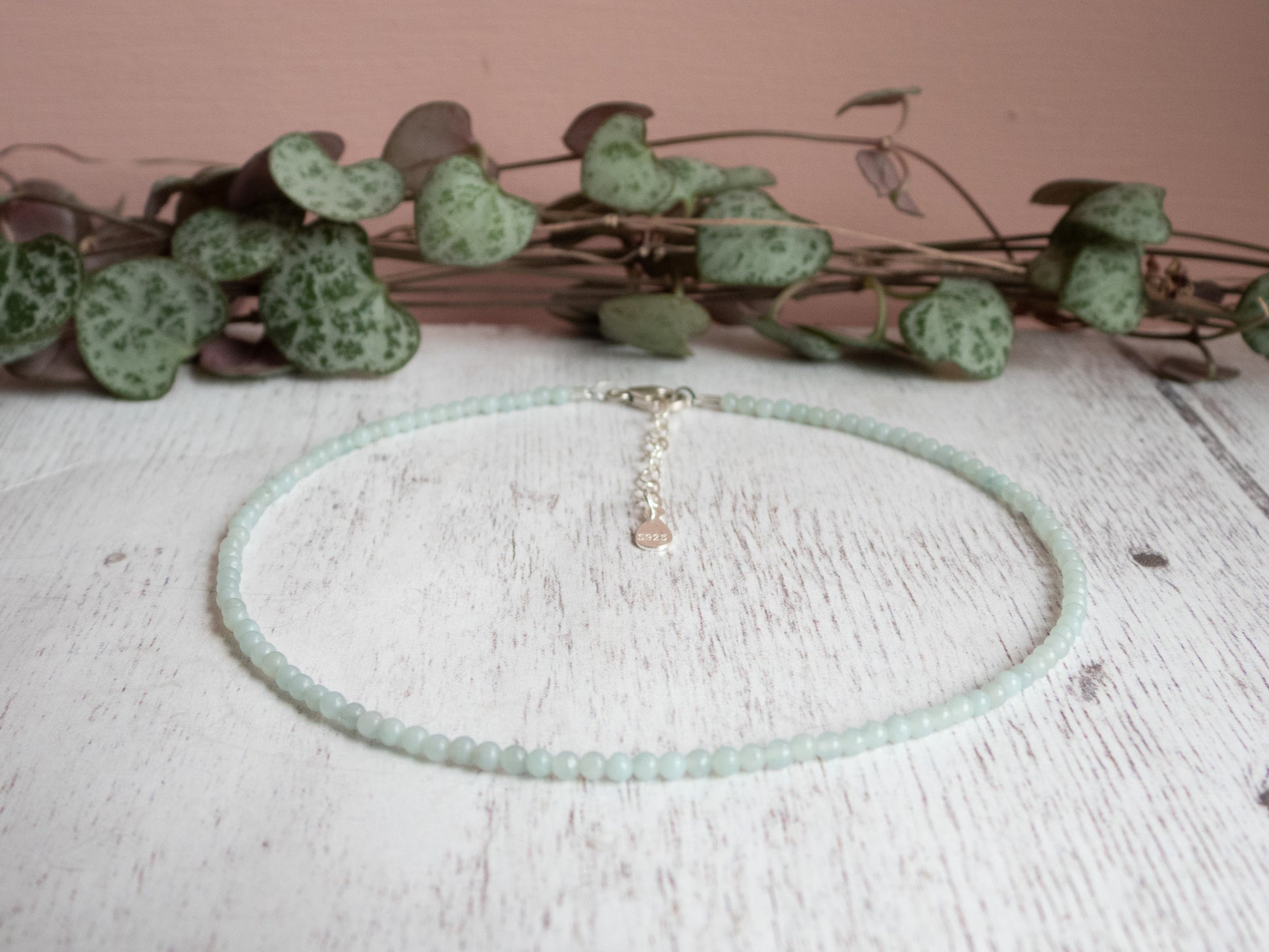 Dainty Amazonite "Hope" Gemstone Beaded Anklet | Round Beads