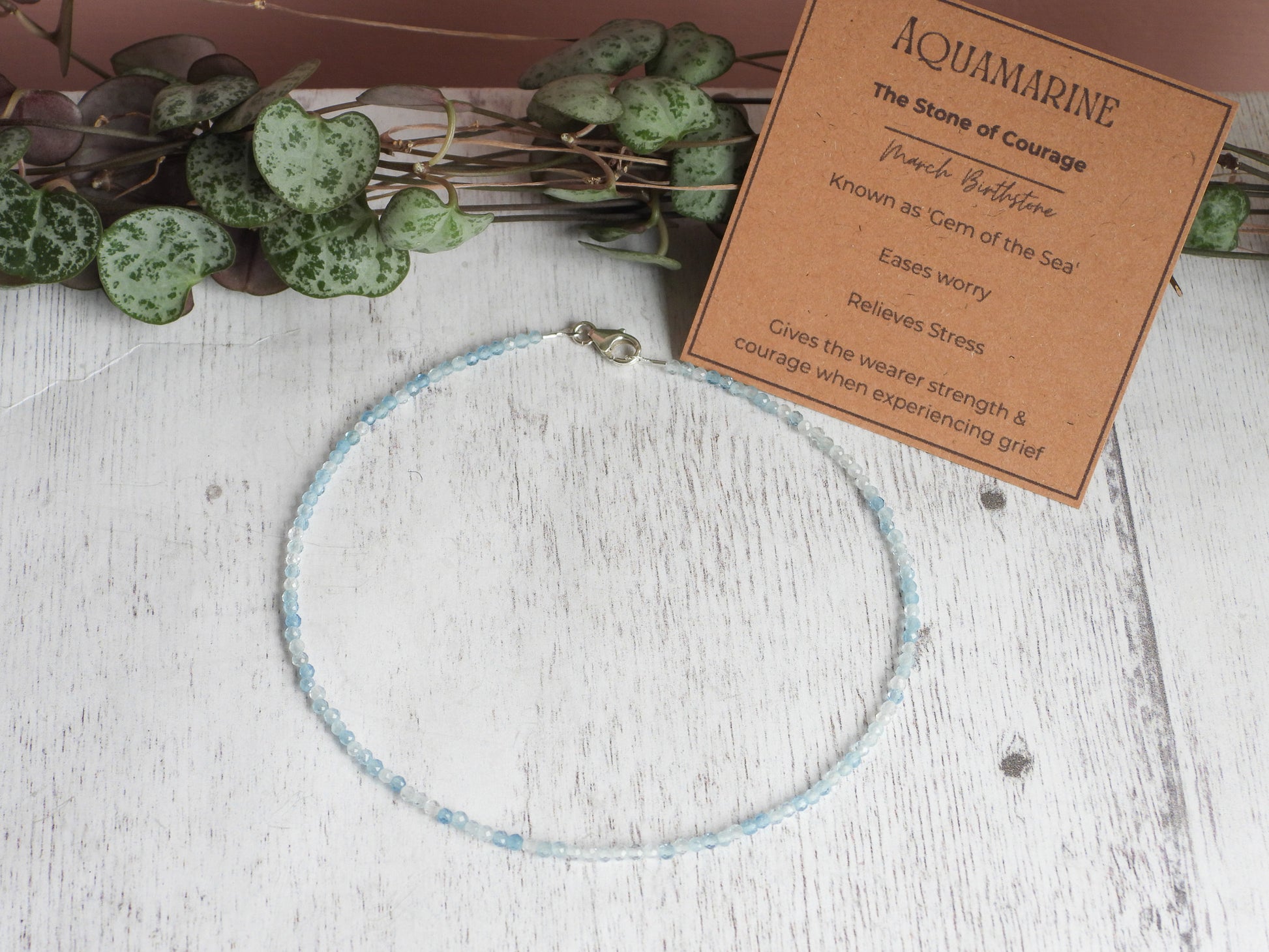 Dainty Aquamarine "Stone of the Sea" Gemstone Anklet | March Birthstone | Faceted Beads