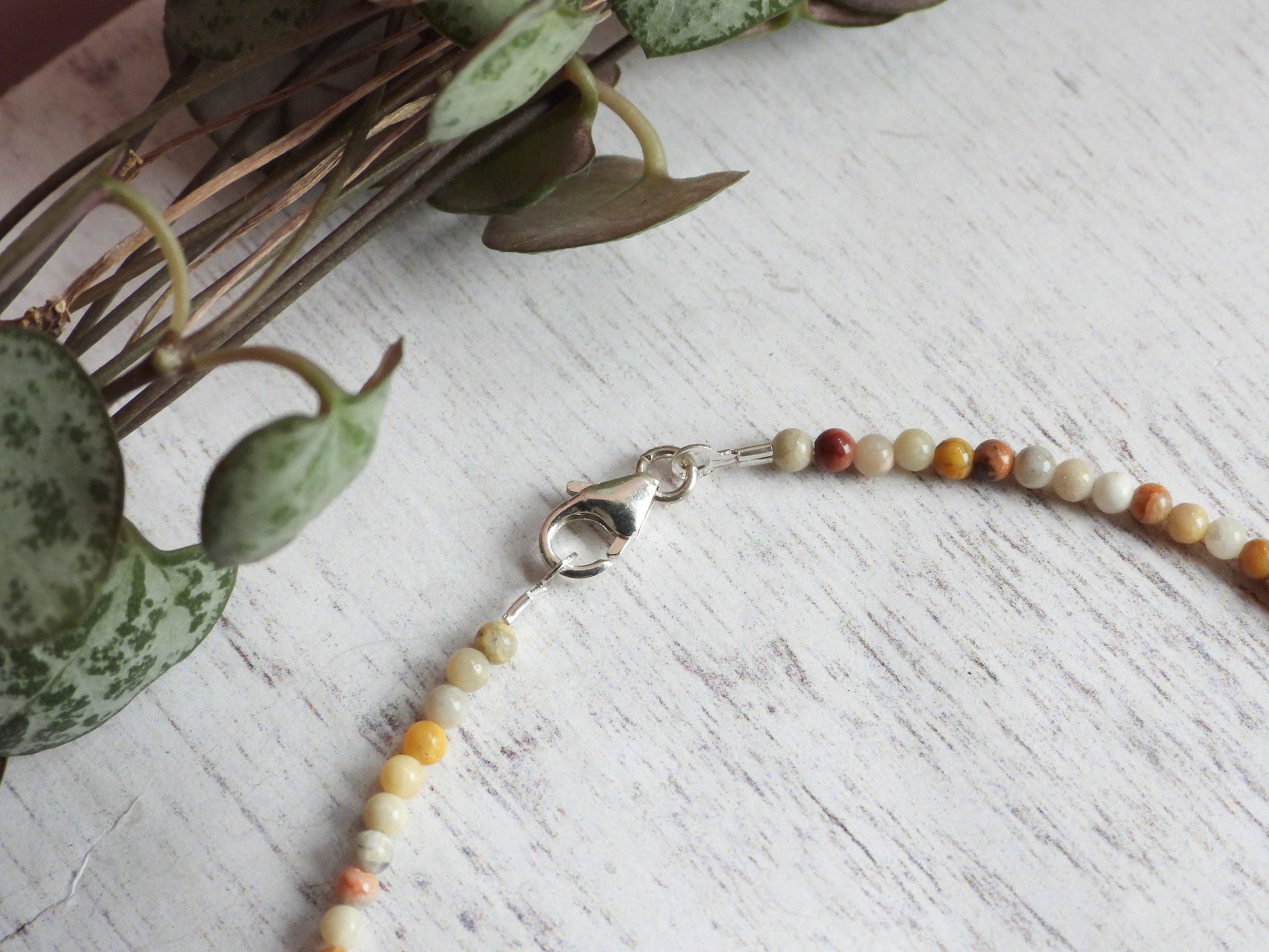 Each piece is meticulously hand-threaded on durable wire, ensuring resilience for everyday wear, while an 8mm sterling silver clasps add a touch of elegance and secure closure.