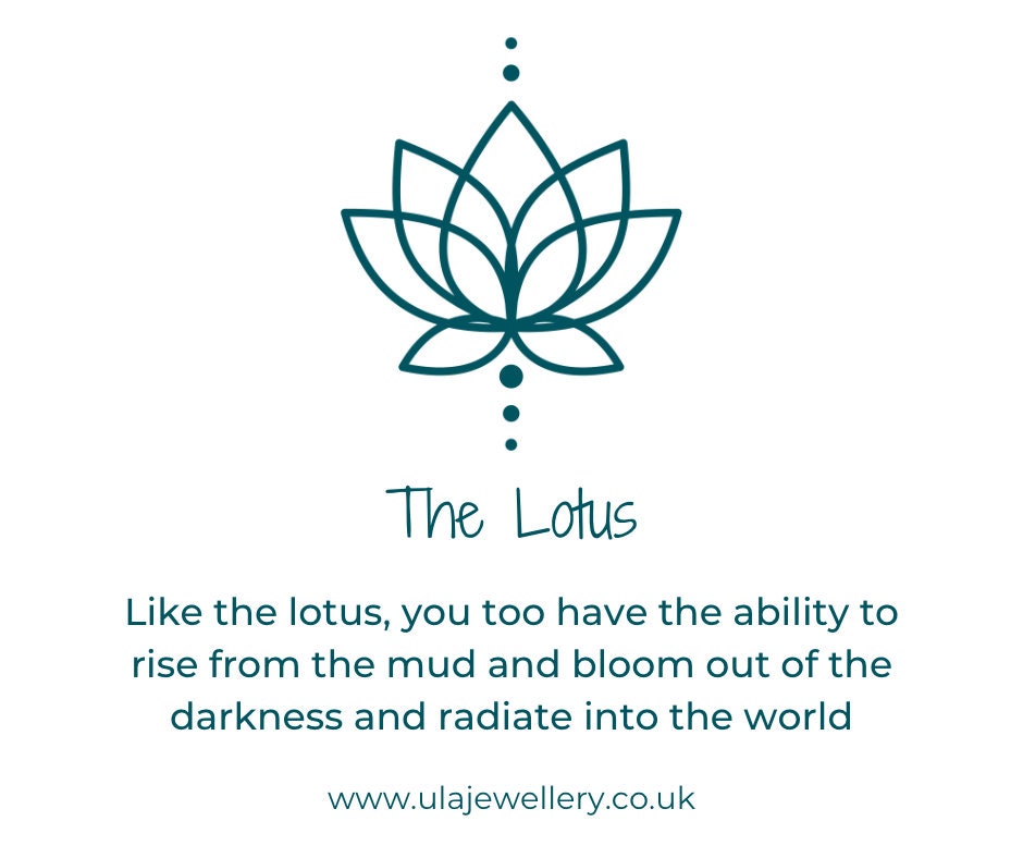 The Lotus is a symbol of rebirth - 'Like the lotus flower, you too have the ability to rise from the mud and bloom out of the darkness and radiate into the world'