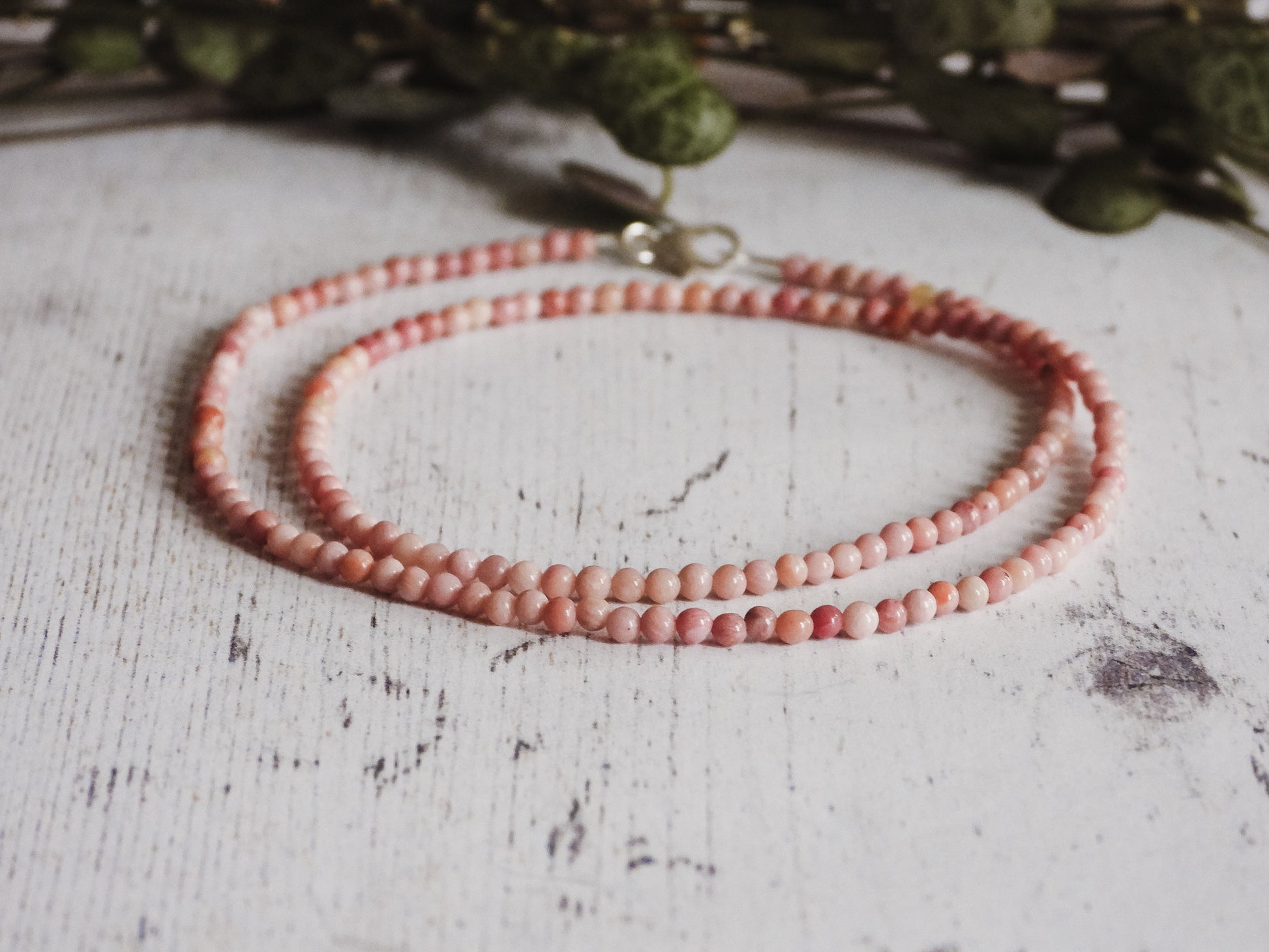 Dainty Rhodochrosite "Compassion" Gemstone Necklace | Round Beads