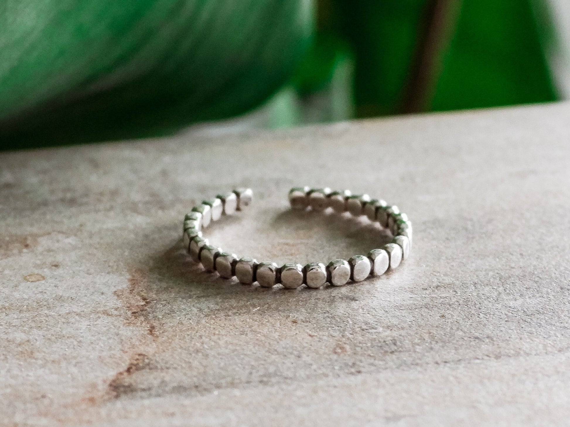 Its dainty and minimalist, measuring approximately 2mm in width, and has a gap to make it adjustable. It can be worn as a toe ring, midi ring, or a ring for girls.