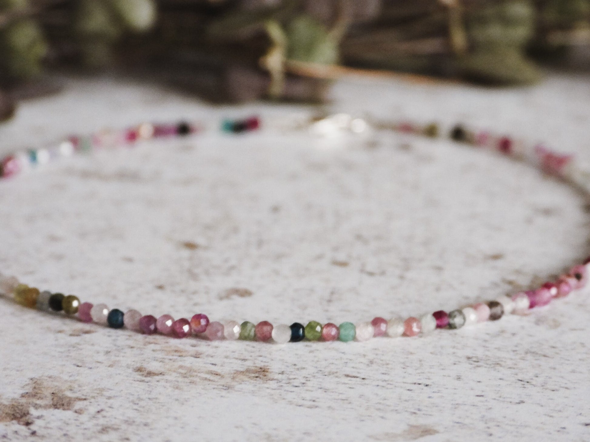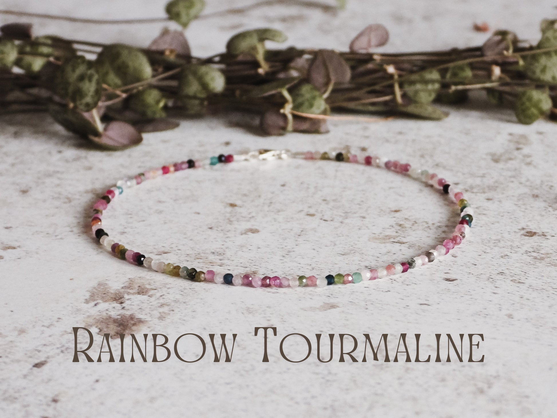 Dainty Rainbow Tourmaline "Forgiveness" Gemstone Anklet | October Birthstone