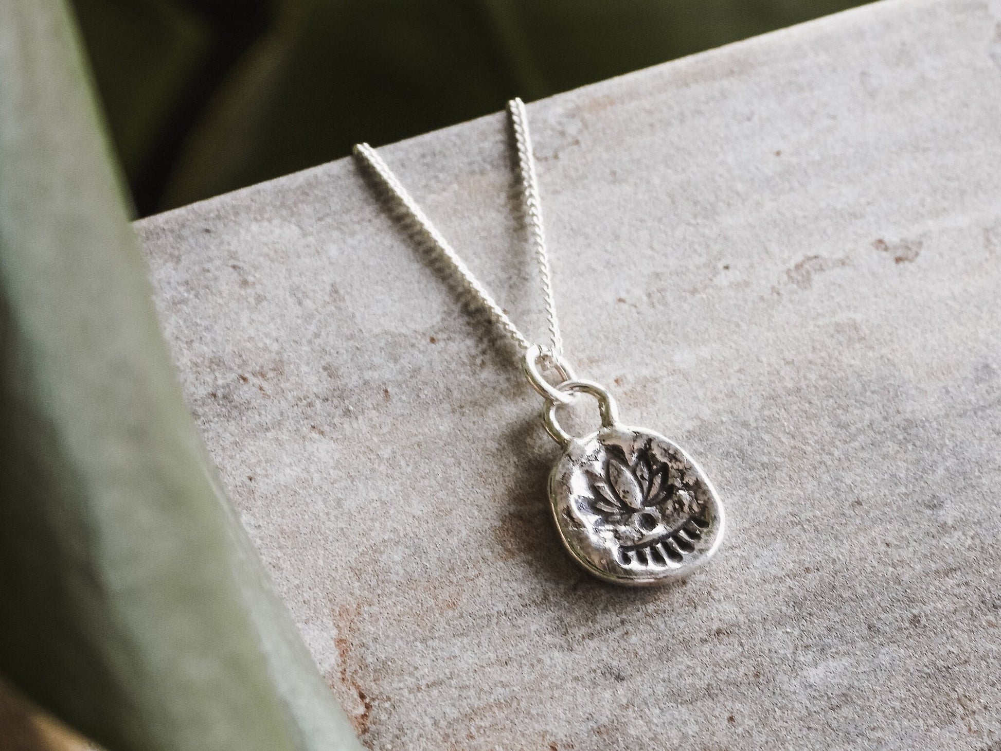 Personalised Lotus Flower Coin Charm Necklace