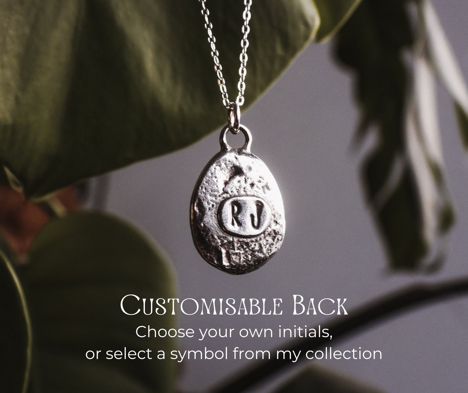 There is an option to have the necklace personalised. Whether it's with your initials, your kids, or you and your partners, this makes a thoughtful, custom-made gift. You can also choose from loads of symbology stamps I have.