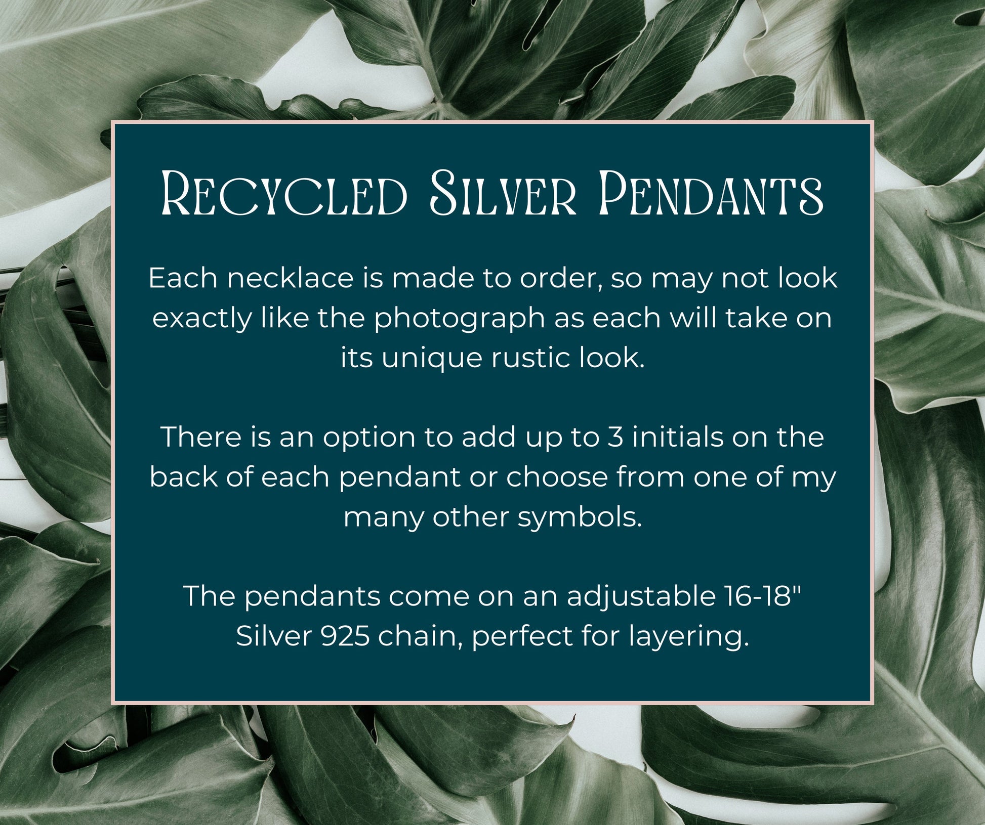 Each necklace is handcrafted, using the off-cuts of silver I collect whilst silversmithing. It gives each necklace a uniquely rustic look, as no two come out the same.