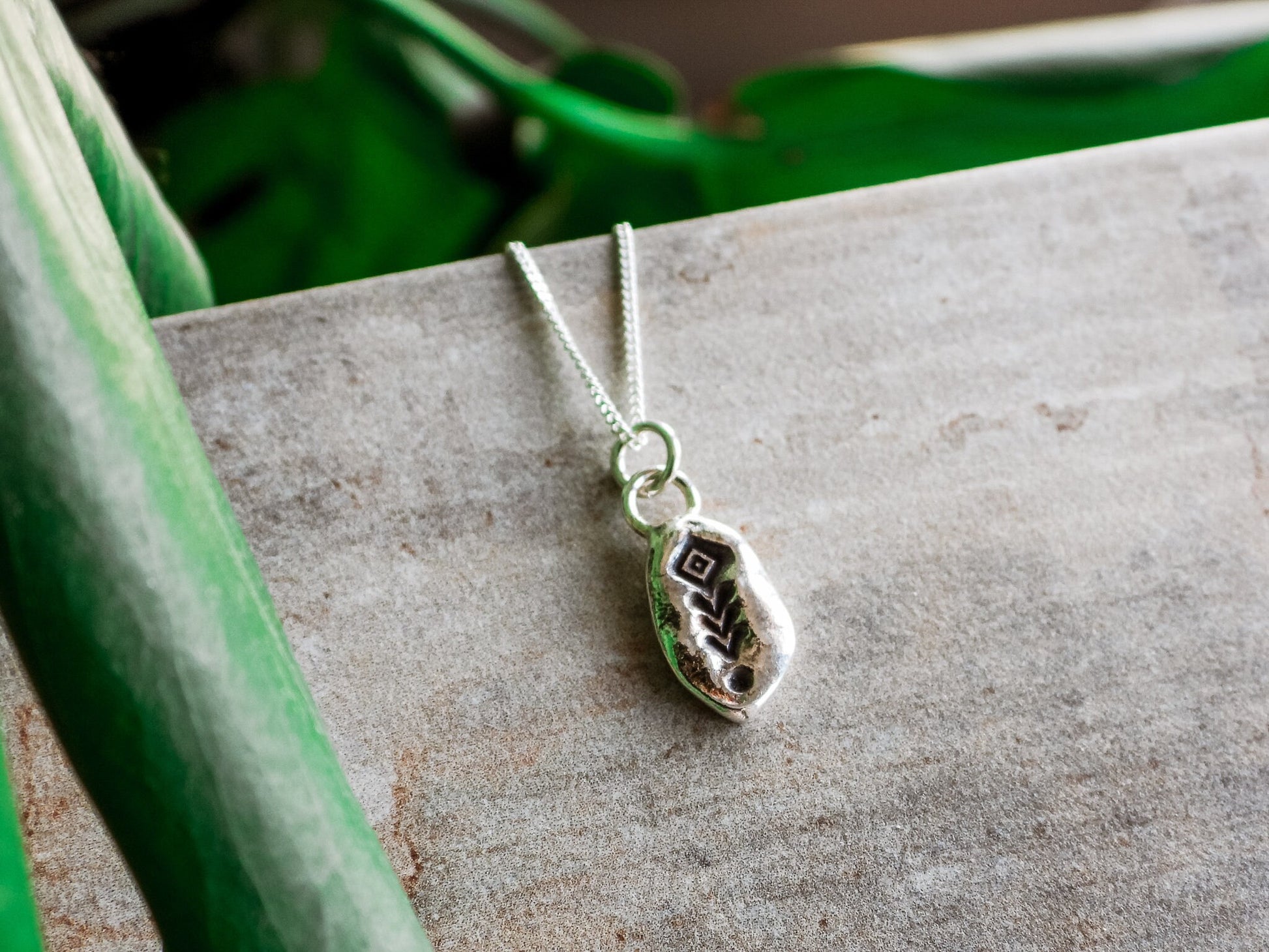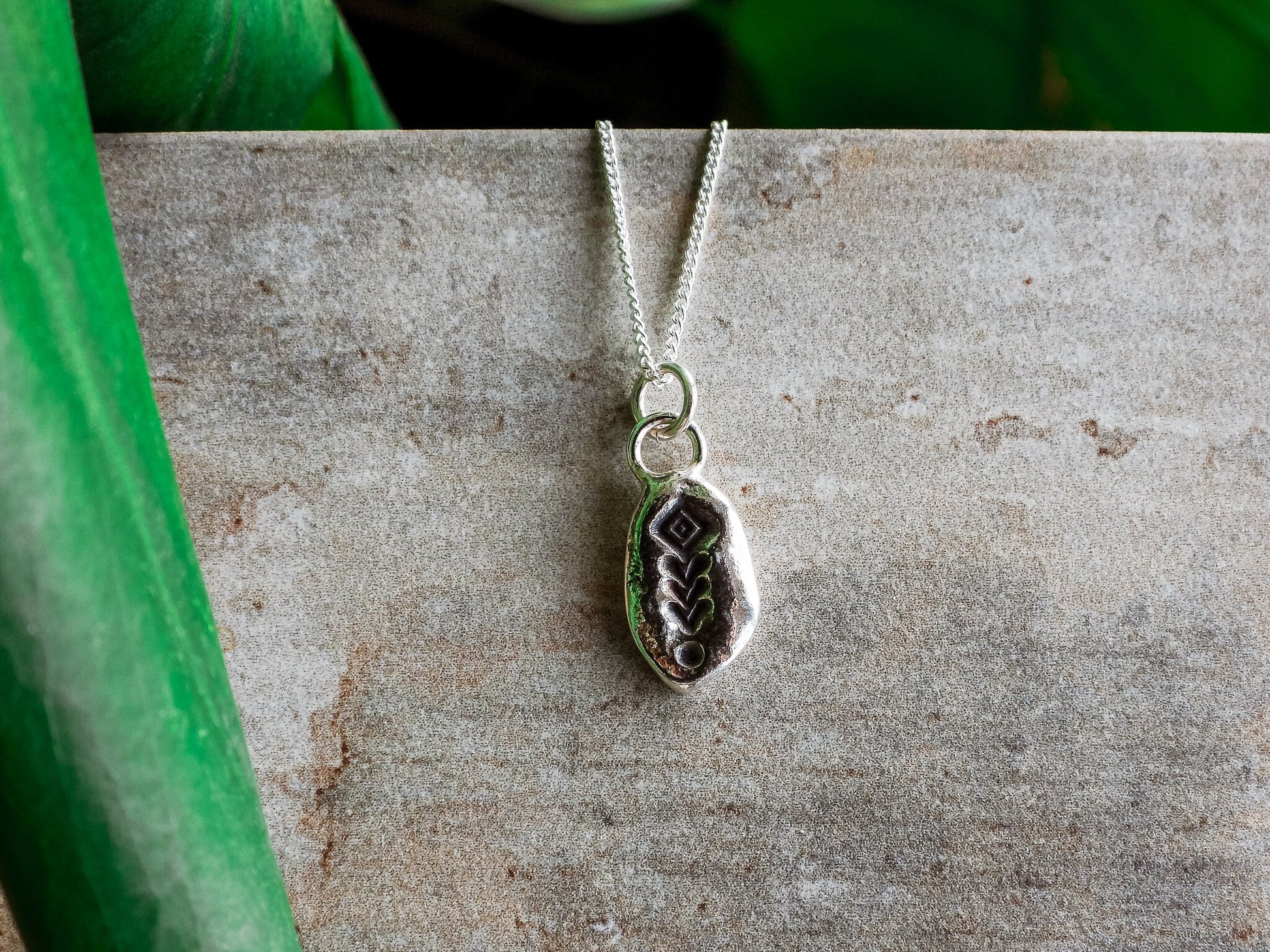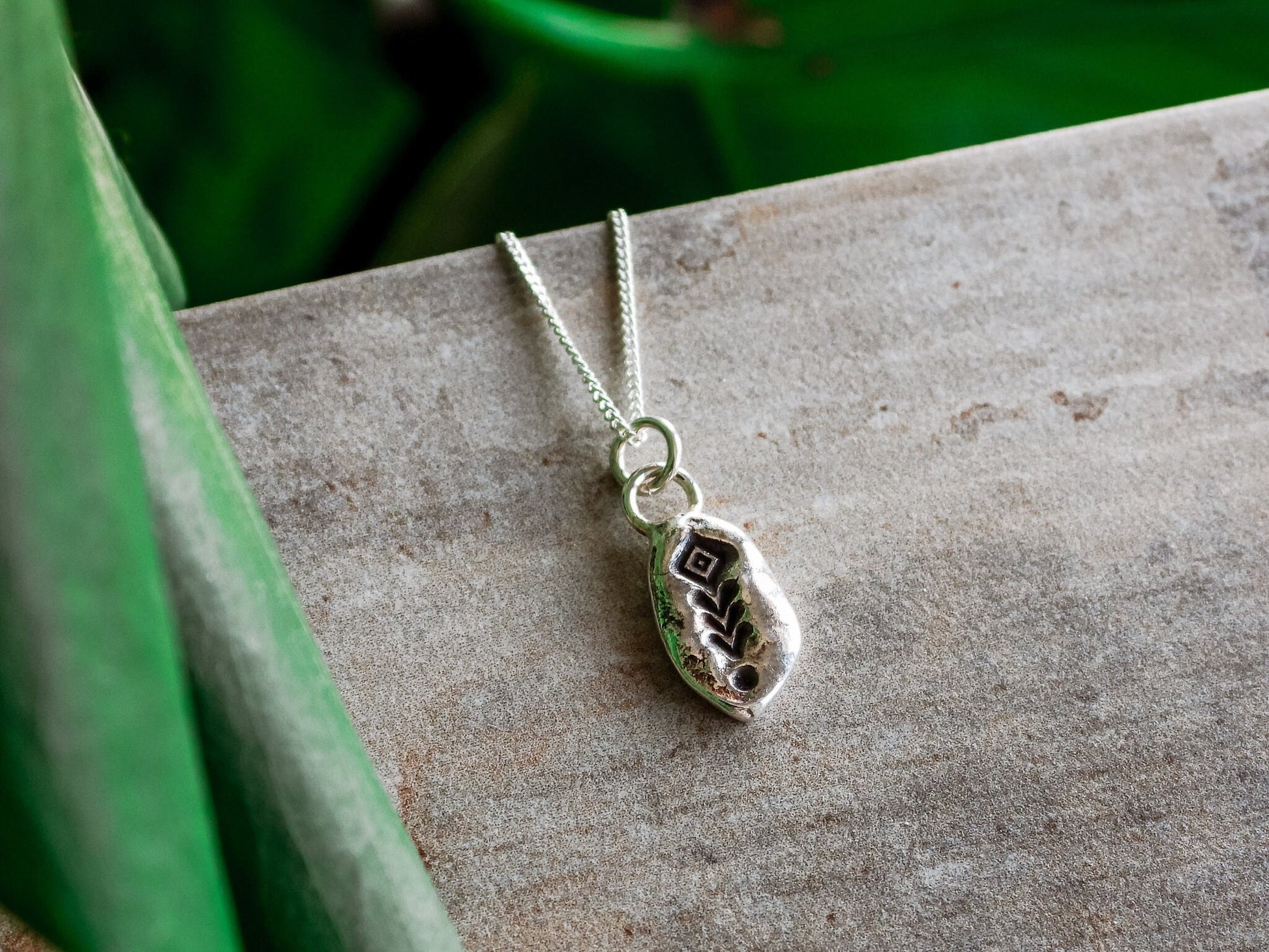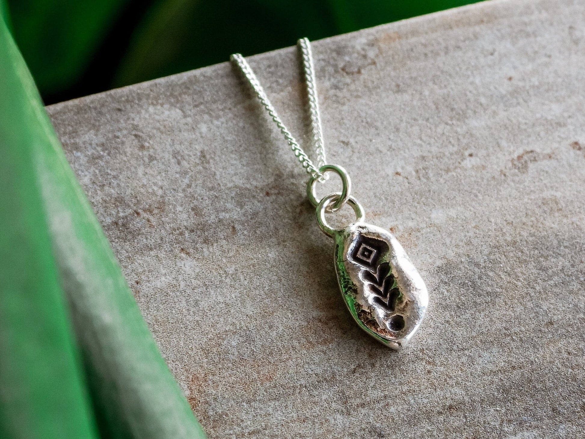 Recycled Sterling Silver Necklace with Bohemian Style Stamp Aztec Eco Friendly Boho Pendant Eco Friendly Unique Gypsy Hippie