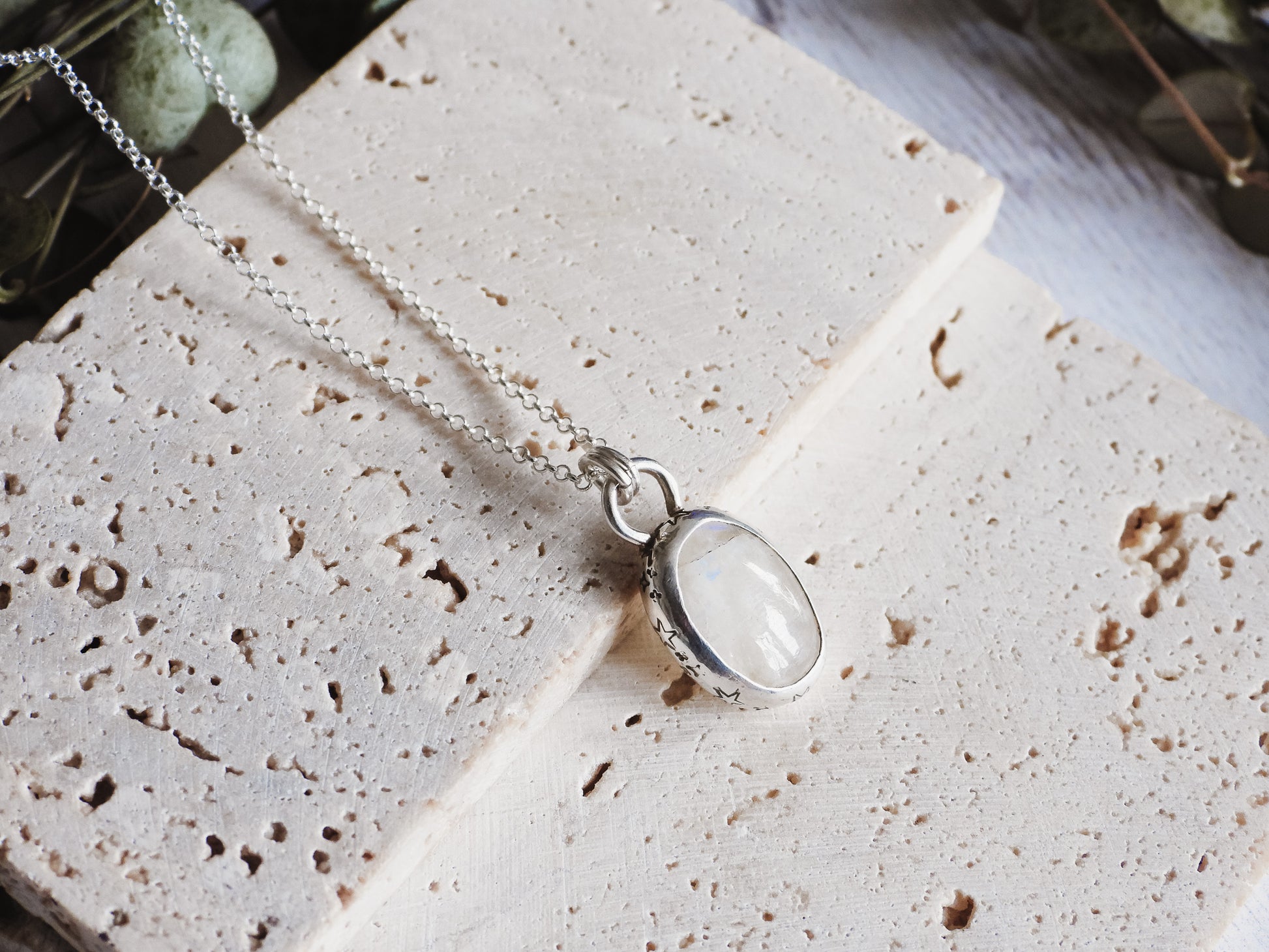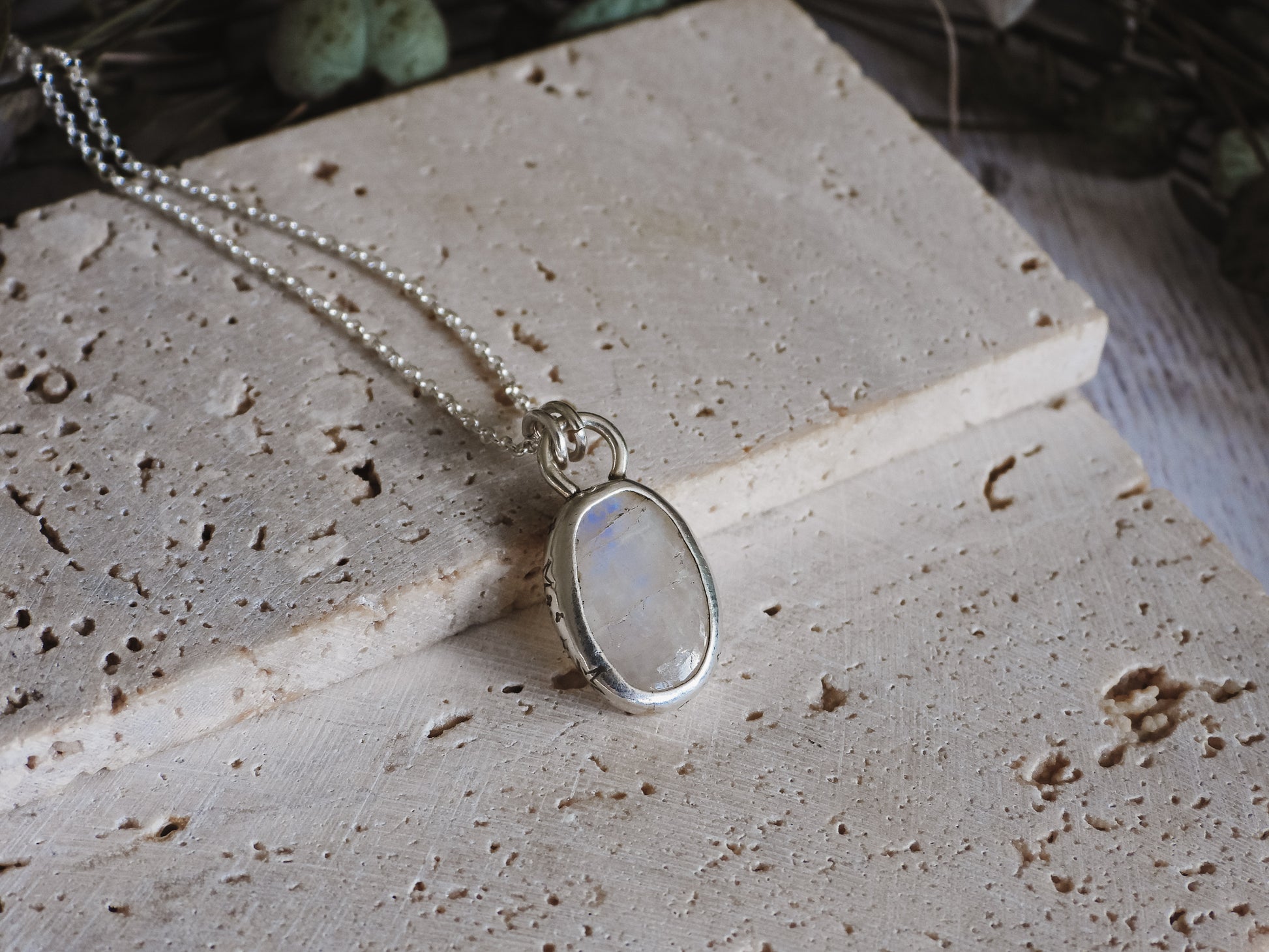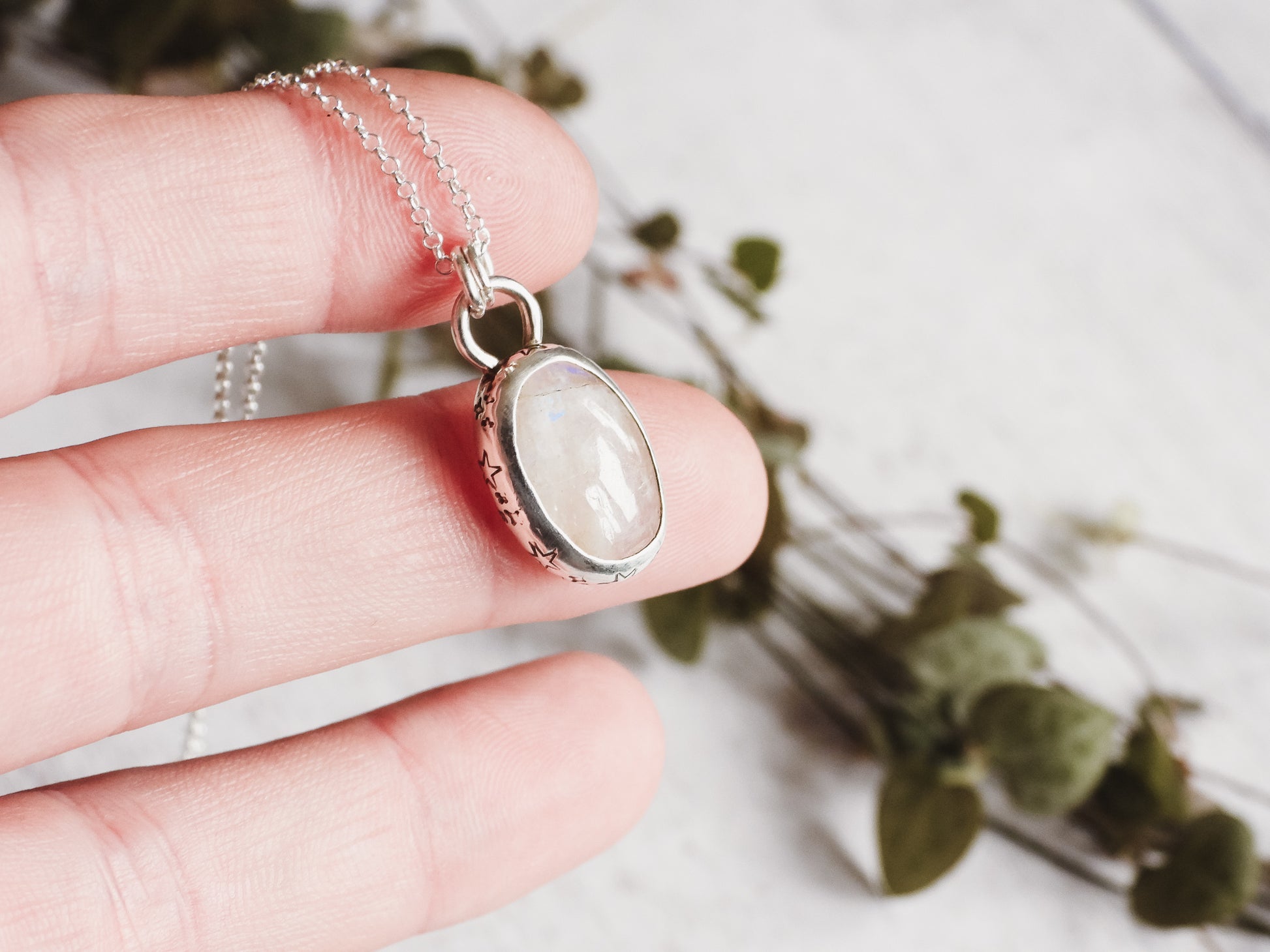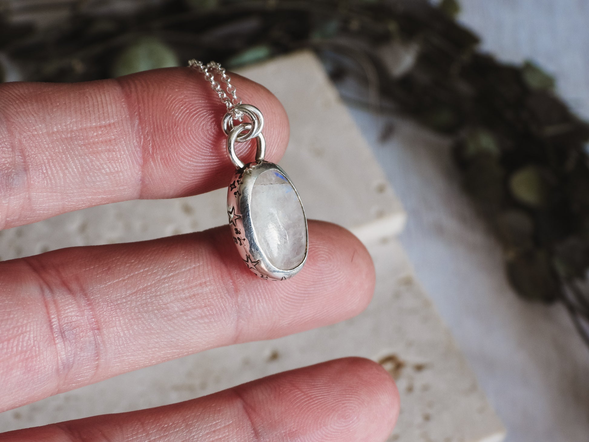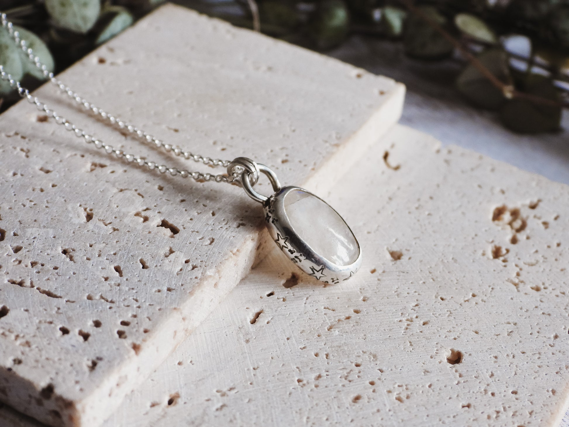 Stary Rainbow Moonstone Charm Necklace | June Birthstone